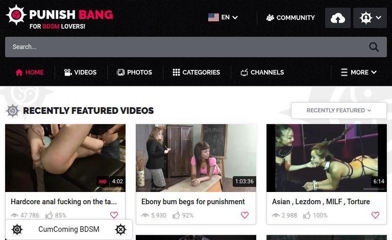 If you’re into BDSM or extreme hardcore content, PunishBang.com has plenty to offer. Their library includes: